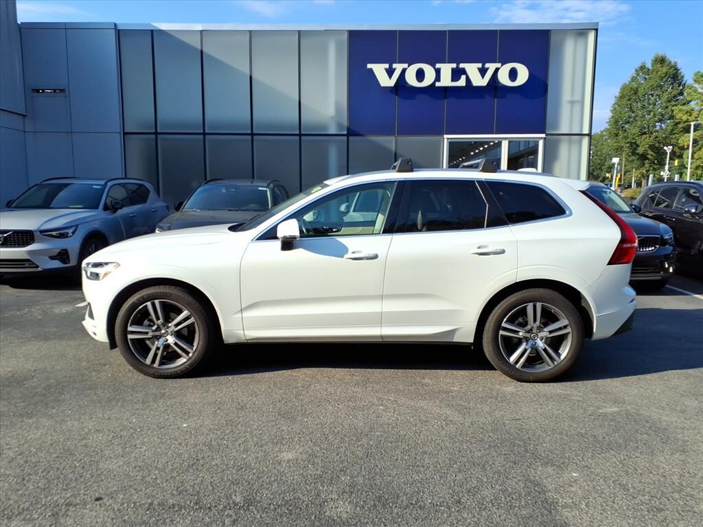 Clean CARFAX. Crystal White Metallic 2020 Volvo XC60 T5 Momentum AWD Automatic with Geartronic I4 AWD, 10 Speakers, 4-Wheel Disc Brakes, ABS brakes, Air Conditioning, Alloy wheels, AM/FM radio: SiriusXM, Anti-whiplash front head restraints, Apple CarPlay/Android Auto, Auto High-beam Headlights, Auto-dimming Rear-View mirror, Automatic temperature control, Brake assist, Bumpers: body-color, Delay-off headlights, Driver door bin, Driver vanity mirror, Dual front impact airbags, Dual front side impact airbags, Electronic Stability Control, Emergency communication system: Volvo On-Call, Exterior Parking Camera Rear, Four wheel independent suspension, Front anti-roll bar, Front Bucket Seats, Front Center Armrest, Front dual zone A/C, Front reading lights, Fully automatic headlights, Heated door mirrors, Heated Front Comfort Seats, Heated front seats, Illuminated entry, Knee airbag, Leather Seating Surfaces, Leather Shift Knob, Low tire pressure warning, Memory seat, Occupant sensing airbag, Outside temperature display, Overhead airbag, Panic alarm, Passenger door bin, Passenger vanity mirror, Power door mirrors, Power driver seat, Power Liftgate, Power moonroof, Power passenger seat, Power steering, Power windows, Premium audio system: Sensus Connect, Radio data system, Radio: High Performance Audio System, Rain sensing wipers, Rear anti-roll bar, Rear fog lights, Rear Parking Sensors, Rear reading lights, Rear seat center armrest, Rear window defroster, Rear window wiper, Remote keyless entry, Security system, Speed control, Split folding rear seat, Spoiler, Steering wheel mounted audio controls, Tachometer, Telescoping steering wheel, Tilt steering wheel, Traction control, Trip computer, Turn signal indicator mirrors, Variably intermittent wipers, Wheels: 18" 5-Y-Spoke Silver Alloy, AWD.
