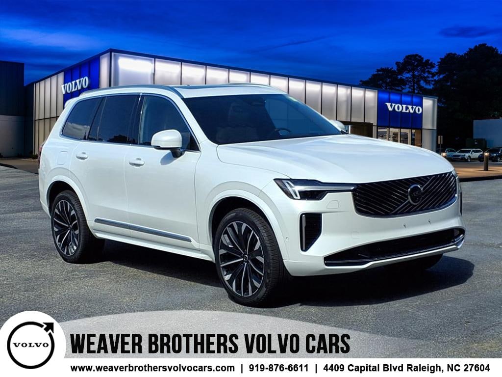 CARFAX One-Owner. Clean CARFAX. Crystal White Pearl 2025 Volvo XC90 Plug-In Hybrid T8 Ultra 6 Passenger 2025.5 AWD Automatic with Geartronic 2.0L I4 Hybrid Turbocharged DOHC 16V LEV3-SULEV30 2.0L I4 Hybrid Turbocharged DOHC 16V LEV3-SULEV30, 14 Speakers, 3rd row seats: bucket, 4-Wheel Disc Brakes, ABS brakes, Air Conditioning, Alloy wheels, AM/FM radio: SiriusXM, Anti-whiplash front head restraints, Apple CarPlay, Auto High-beam Headlights, Auto-dimming door mirrors, Auto-dimming Rear-View mirror, Automatic temperature control, Brake assist, Bumpers: body-color, Delay-off headlights, Driver door bin, Driver vanity mirror, Dual front impact airbags, Dual front side impact airbags, Electronic Stability Control, Emergency communication system: Volvo Cars App w/4 Year Subscription, Exterior Parking Camera Rear, Four wheel independent suspension, Front anti-roll bar, Front Bucket Seats, Front Center Armrest w/Storage, Front dual zone A/C, Front reading lights, Fully automatic headlights, Garage door transmitter: HomeLink, Genuine wood dashboard insert, Genuine wood door panel insert, harman/kardon® Speakers, Headlight cleaning, Heads-Up Display, Heated door mirrors, Heated Front Bucket Seats, Heated front seats, Heated rear seats, Heated steering wheel, Illuminated entry, Integrated rear child seats, Knee airbag, Low tire pressure warning, Memory seat, Navigation System, Occupant sensing airbag, Outside temperature display, Overhead airbag, Panic alarm, Passenger door bin, Passenger vanity mirror, Power door mirrors, Power driver seat, Power Liftgate, Power moonroof, Power passenger seat, Power steering, Power windows, Radio data system, Radio: harman/kardon Premium Audio System, Rain sensing wipers, Rear air conditioning, Rear anti-roll bar, Rear dual zone A/C, Rear fog lights, Rear reading lights, Rear window defroster, Rear window wiper, Remote keyless entry, Security system, Speed control, Speed-sensing steering, Split folding rear seat, Spoiler, Steering wheel mounted audio controls, Tachometer, Telescoping steering wheel, Traction control, Trip computer, Turn signal indicator mirrors, Variably intermittent wipers, Ventilated front seats, Ventilated Nappa Leather Upholstery, Wheels: 21" 5-Multi Spoke Black Diamond Cut Alloy, 2.0L I4 Hybrid Turbocharged DOHC 16V LEV3-SULEV30.